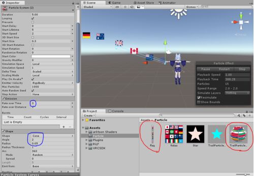 16種類くらいの旗を並べてパーティクルとして出る状態にしましょうあんまり物量出てもあれなので少なめに・・・。 パーティクルの粒子をランダムな画像にする方法はこちらの記事にありますゆえ。 http://yananann.hatenadiary.jp/entry/2018/10/25/224105 Parti…